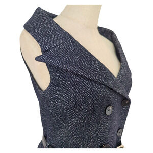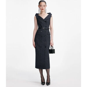 Self-Portrait Navy Herringbone Wool Midi Dress US 8