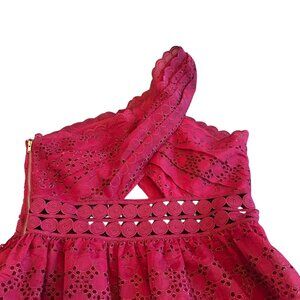 Self-Portrait One Shoulder Cranberry Red Eyelet Lace Dress A-Line Cutout Size 8