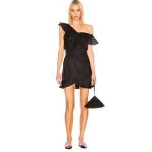 Keywords: lace, lace trim, black, black lace, button front, embellished lace, guipure, off shoulder, ruffles, little black dress, cocktail, special occasion, wedding guest, date night, designer, evening, quiet luxury, spring, summer, fall, winter