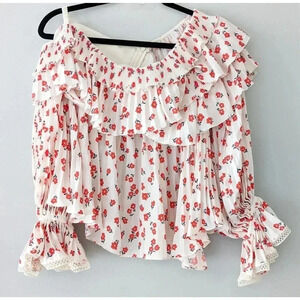 Frilly ruffles and pretty prints are at the core of Self-Portrait's DNA and all are on display in this floral-printed long-sleeved top. The one shoulder top boasts oversized ruffles and is paired with pleats creating a voluminous silhouette. This versatile style will instantly dress up any look taking you seamlessly from day-to-night.