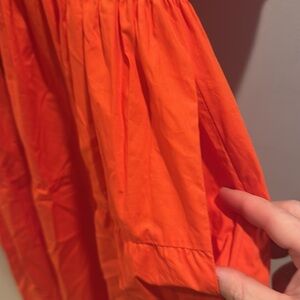 Self-Portrait Orange Pleated Cotton Poplin Midi Dress with Puff Sleeves 10
