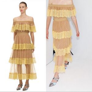 Self Portrait Polka Dot Lace Off Shoulder Dress