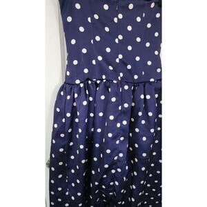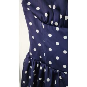 Blue polka dots (Main Fabric: 100% Polyester, Lining: 100% Polyester). Cocktail Dress. Strapless. Sleeveless. Back zipper closure. Shoulder to Hemline Length: 45.5". Imported.