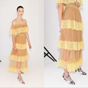 Self Portrait Polka Dot Lace Off Shoulder Dress US4