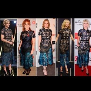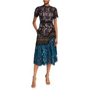 Self-Portrait Prairie Guipure Lace Midi Dress in Blue Polyester size 4 XS 0