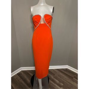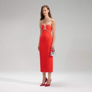 Self-Portrait Red Bandeau Crepe Midi Dress