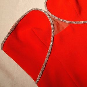 Be ready to break hearts in this sleek midi dress, cut from red heavy crepe for a structured fit and smooth finish. Its playful yet daring off-shoulder neckline is lined with diamanté trim for a hint of sparkle, and is fitted throughout for a sculpted silhouette. Style it with mules and statement earrings and let the dress do the talking