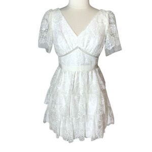 Self-Portrait Rose Lace Sequin Tiered Mini Dress in White US 6 Cocktail