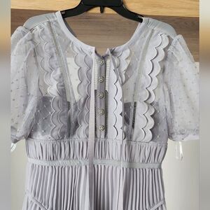 Self-Portrait Scalloped-Trim Pleated Chiffon Midi Dress