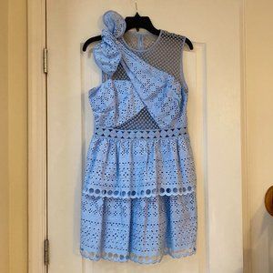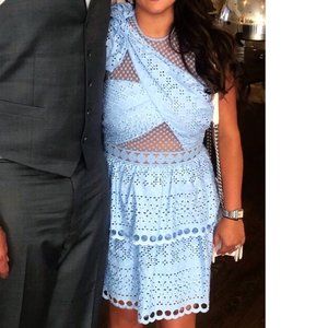 This is a beautiful dress by Self-Portrait in light blue, perfect for so many occasions! Worn only once to a wedding, it has no signs of wear. It is SO stunning!