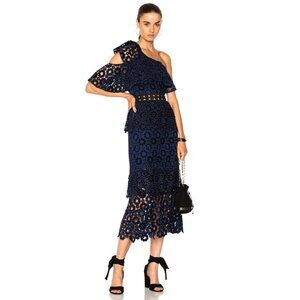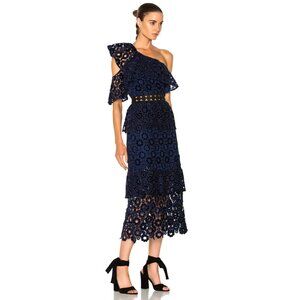 Self-Portrait Dress • One Shoulder Dress • Lace Dress • Blue Black Dress • Midi Dress • Cocktail Dress • Evening Dress • Formal Dress • Tiered Ruffle Dress • AW17 Inspired • Designer Dress • Wedding Guest Dress • Special Occasion Dress • Size 2 Dress • Luxury Dress