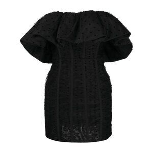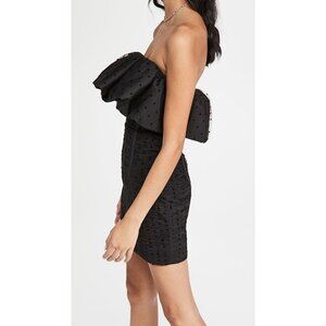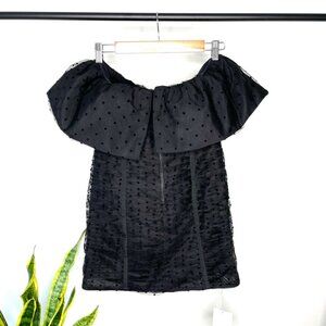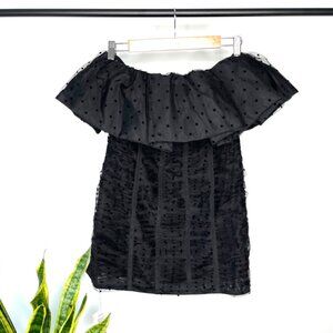 Self-Portrait Strapless Swiss Dot Frill Mini Cocktail Dress Black Size 10 NWT