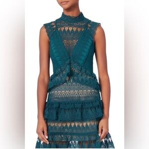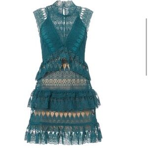 Self-Portrait / Teardrop Guipure tiered lace minidress Teal turquoise US 6 UK 10