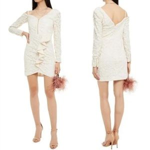 Reposh: Wore this only once at dinner during honeymoon. Loved it but ready to rotate for something new. Very flattering. Chic off-shoulder mini dress with textured fabric. Features elegant ruffle detail. Ideal for stylish events.