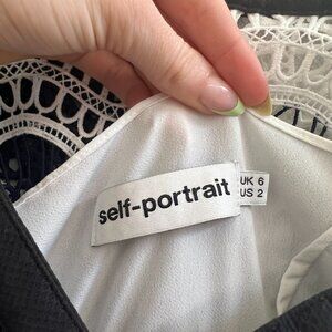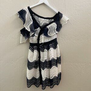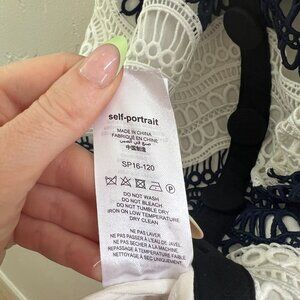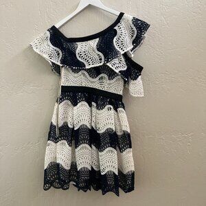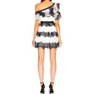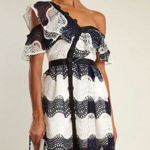 Self-Portrait White Blue Guipure Lace One Shoulder Cocktail Mini Dress