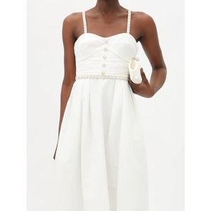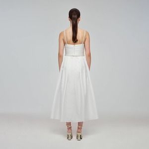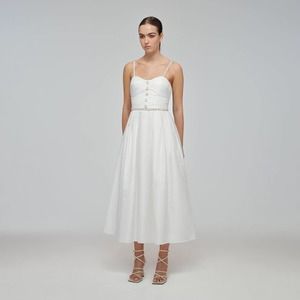 Self-Portrait White Taffeta Diamante Strap Midi Dress