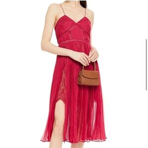 Self-Portrait / fuchsia pleated chiffon midi lace inset dress UK 4 US 0