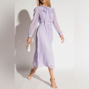 Crafted of flowing chiffon, this Self-Portrait midi-dress is finished with a lace broderie collar.