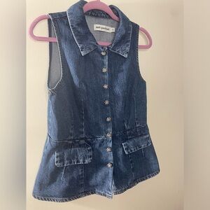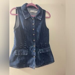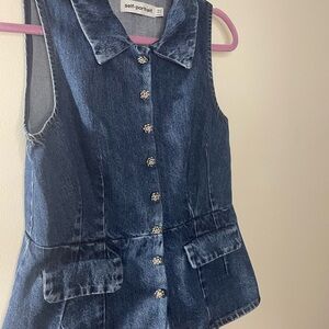 Self-Portrait||Denim Vest, with Crystal like floral buttons, Size 10, Worn Once