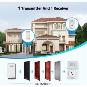 🧿Long Working Distance: This wireless doorbell for home/apartment/classroom/factory/hospital features up to 1300ft wireless range, ensuring you won't miss a visitor, even if you are a few rooms away or on another floor. Please ensure that your door is not a metal door, as metal can have a strong interference with the signal, greatly reducing the working distance of the doorbell under normal conditions