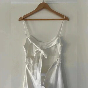 Selfie Leslie ABBY CAMI STRAP GATHERED BUST FRONT SPLIT MIDI DRESS WHITE Size M