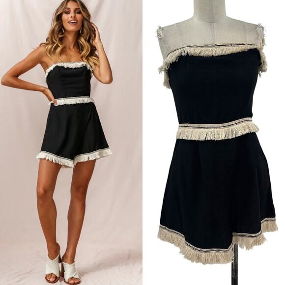 Selfie Leslie Bermuda Bandeau Tassel Trim Romper in Black