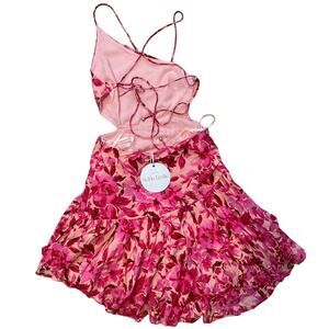 Selfie Leslie Destination Open Back Mini Floral Cottagecore Dress Pink Small