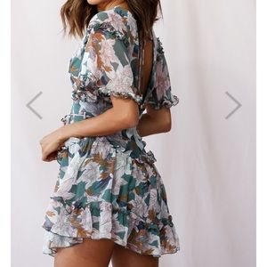 Selfie Leslie // Psalm Angel Sleeve Frill Dress Olive // size M // Floral, Wrap Dress // NWOT // never worn