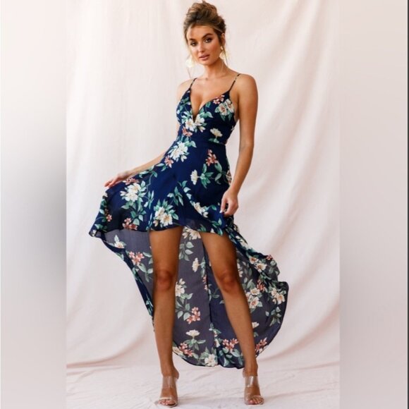Selfie Leslie Imelda V neckline high low hem dress Floral print in Navy blue