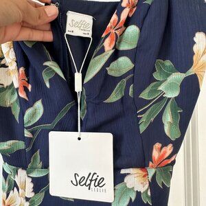 Selfie Leslie Imelda V neckline high low hem dress Floral print Navy blue SMALL
