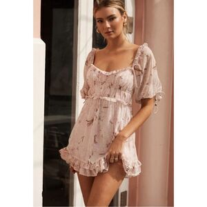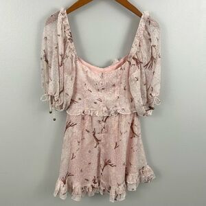 Selfie Leslie Kirra Puff Sleeve Ruched Bodice Dress NWT Size Small