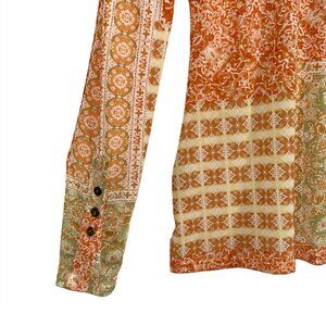 Selfie Leslie Milla Button Up Sheer Blouse Orange Long Sleeve Top Size Small