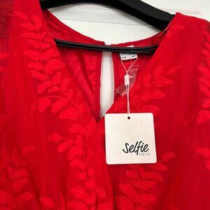 Selfie Leslie Red Mini Dress Swiss Dot Ruffle Cutout Partywear Medium BNWT