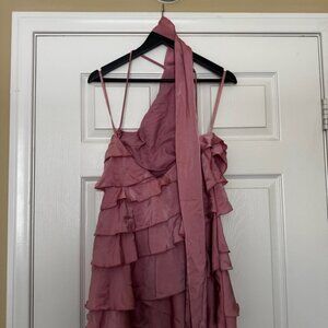 Selfie Leslie tiered ruffle one-shoulder mini dress in pink, size XS. Never worn, no stains