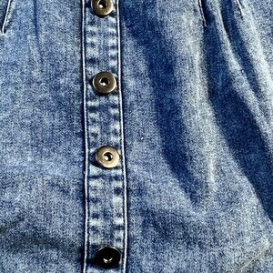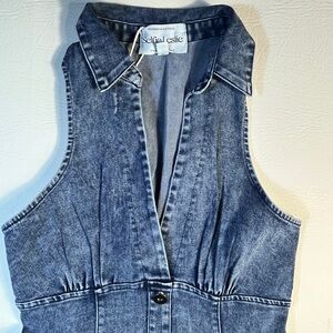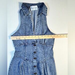 Chic denim dress with button-down front. Sleeveless design. Perfect for casual outings.