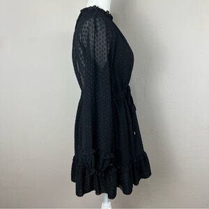 Selfie Leslie Swiss Dot Polka Dot High Neck Long Sleeve Mini Dress Size Small