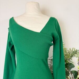Selfie Leslie Tamar Long Sleeve Off-Shoulder Mini Dress Kelly Green | New NWT |