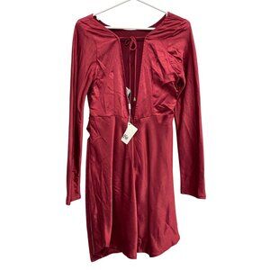 Selfie Leslie Thank Me Later Long Sleeve Open Back Dress Size Large Red Wine NEW
