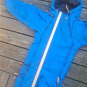 Lightweight and water-resistant wearable sleeping bag for kids, designed for warmth and mobility during outdoor adventures. Features include: