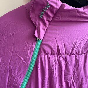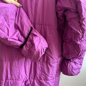 Older model Selk'bag Lite wearable sleeping bag outfit for camping or outdoor lounging. Full outfit - legs do not zip off like newer versions. Dropped crotch. Front pocket. Cinched hood.