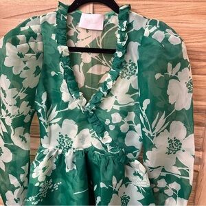 Selkie Summer Field Macaron Dress cuz you always dress to impress! This airy organza mini dress does the most with its long buttoned puff sleeves, ruffled deep V neckline, and all over floral print.