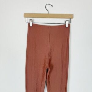 These cozy knit flare pants are lined with a brushed fleece for a super comfy feel while an ultra wide paneled flared leg offers a trendy update to the classic flared legging silhouette. And the warm terracotta hue is the perfect hue to pair with just about anything.