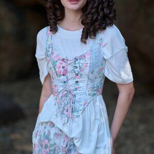 Selkie The Picnic Blanket Duchess Corset XSmall Lace Up Blue Pink Floral Top