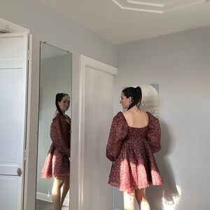 Selkie The Princess Mini Dress Long Puff Sleeves Crimson Floral Red Size Large