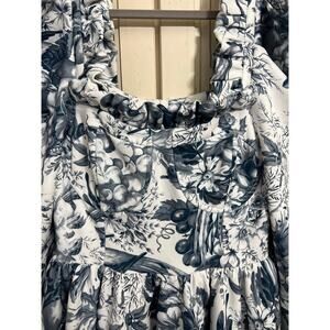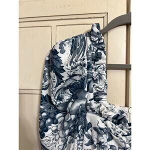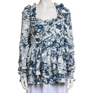 Selkie size small Borlyn top in excellent condition. Blue and white super heavy polyester/spandex blend. Zips in the back. Measures 15 1/2” from armpit to armpit when not stretched at all and it is 28” long from shoulder to bottom hem.