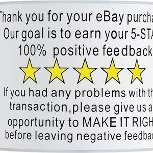 Ebay thank you stickers. One roll with 200 stickers. 2x3". "thank you for your Ebay purchase. Our goal is to earn your 5 star 100% positive feedback. If you has any problems with this transaction, please give us an opportunity to make it right before leaving negative feedback."