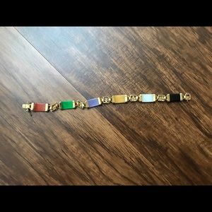 This listing is for 1 of the multi-color 14k gold jade bracelet. The one featured in the picture is the one I'm selling for this listing. The other ones have different listings for them. The claps does not close on this one. You can get that fixed but other than that, great bracelet. Fits like a size 7 wrist. I'm selling as is. I give detailed pictures. No returns. Any questions, just ask. Thank you