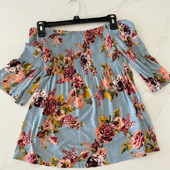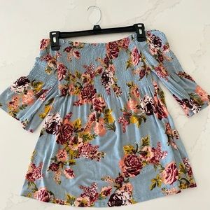 Light Blue Foral Off-shoulder Top