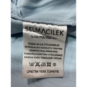 Selmacilek x Revolve 'Wide' Blue Leg Pant Size M: zip fly with hook and bar closure, side slant pockets, lightweight satin fabric.