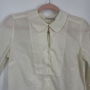 Semantiks Silk Blend Blouse size Small Peek Key hole Buttonup Long Sleeves White
